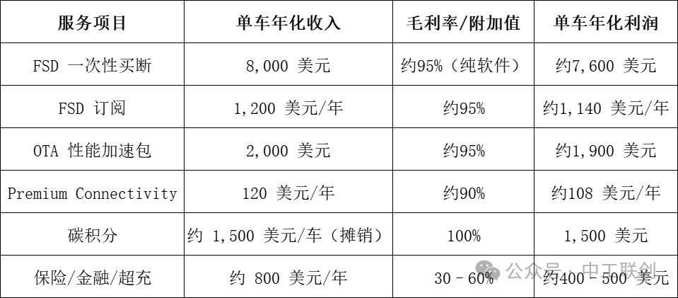 特斯拉作为全球新能源汽车领域的标杆,在价值链管理上的策略极具启发性。特斯拉上海工厂主要承担冲压、焊接、涂装和总装等相对低利润的制造环节。然而,特斯拉却将其高附加值的十大生产性服务牢牢掌控于美国总部。这些服务包括:电池管理系统(BMS)核心算法研发、自动驾驶软件与AI算法、全球零部件采购与调度、品牌塑造与全球营销策略、直营销售与售后服务体系、碳积分交易与能源管理、OTA(空中下载)软件升级服务、金融租赁与保险服务、超级充电网络建设与运营、核心芯片设计。其中,制造环节虽然贡献了85% 的单车收入,但“降无可降”的成本使利润被锁死在 8% 以下;服务环节:收入占比小,却贡献超高利润,如仅FSD 一项,即使按 25% 渗透率计算,也能为特斯拉带来约2,000 美元/车的年化高毛利利润,相当于制造环节净利润的2-3倍。